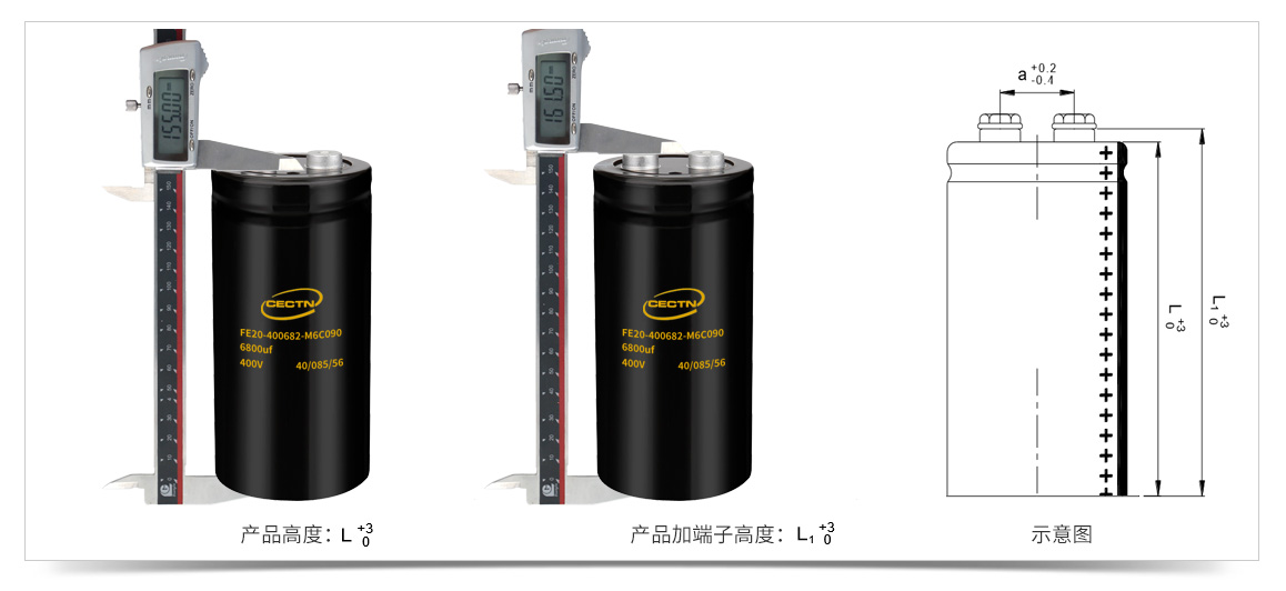 400V10000uF螺栓型鋁電解電容高度為155mm,加上端子高度為161.5mm。